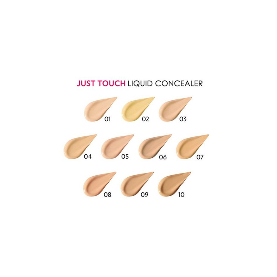 Μακράς διάρκειας & μεσαίας κάλυψης υγρό κονσίλερ Just Touch που διορθώνει και καλύπτει τους κύκλους των ματιών και χαρίζει ένα φυσικό, φωτεινό αποτέλεσμα. Εξαφανίζει τα σημάδια της επιδερμίδας, τις κοκκινίλες και καλύπτει τις ατέλειες του δέρματος.