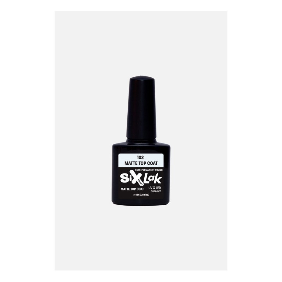 N.102 Top Coat Matte Με τη νέα επαναστατική φόρμουλα, το ημιμόνιμο βερνίκι SixLak θα απογειώσει το στυλ σου, ενώ η μέγιστη διάρκεια έως και 1 μήνα, θα σου λύσει τα χέρια!
